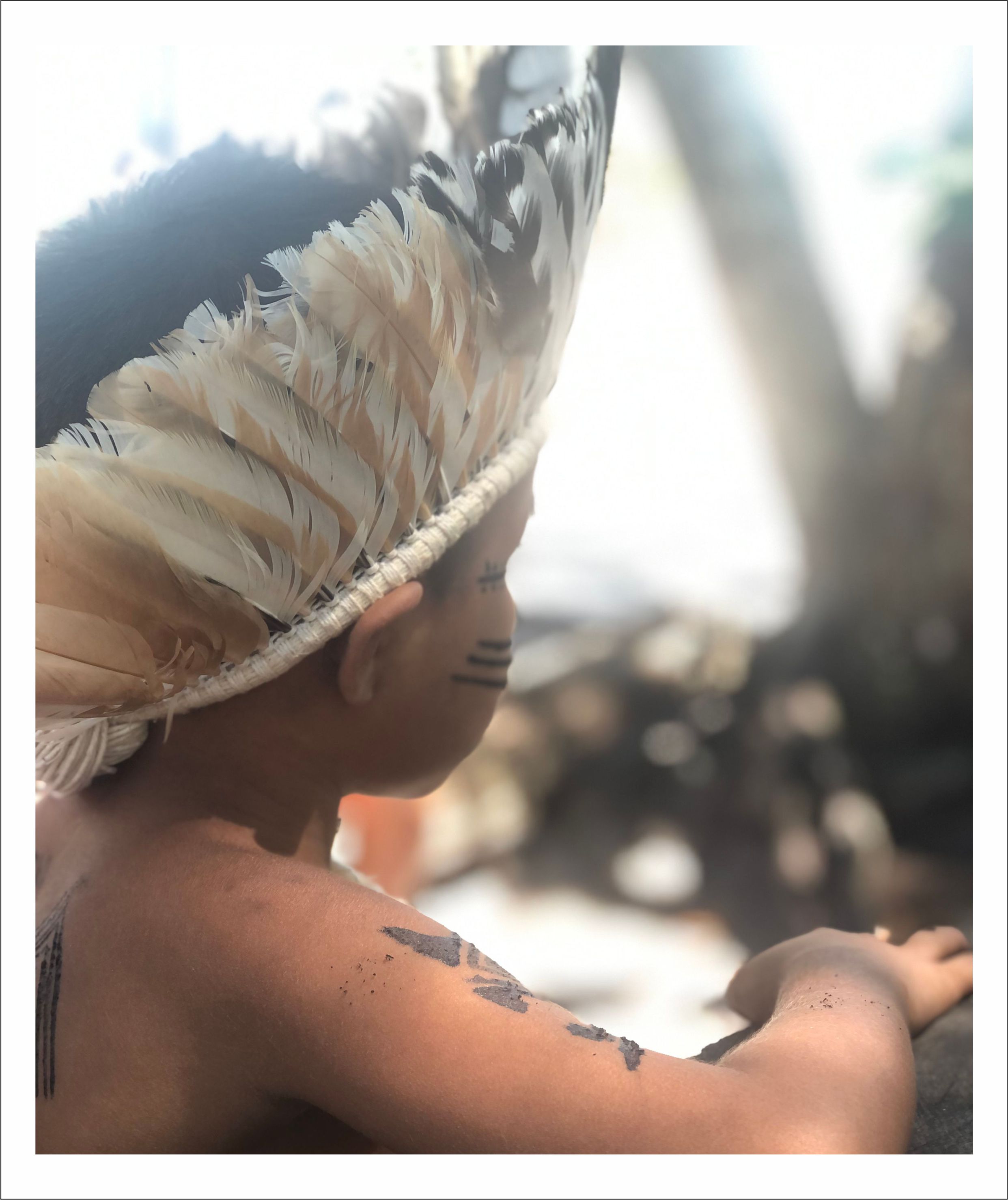 Menino indÃgena fazendo apresentação para os alunos da Escola Monteiro.
