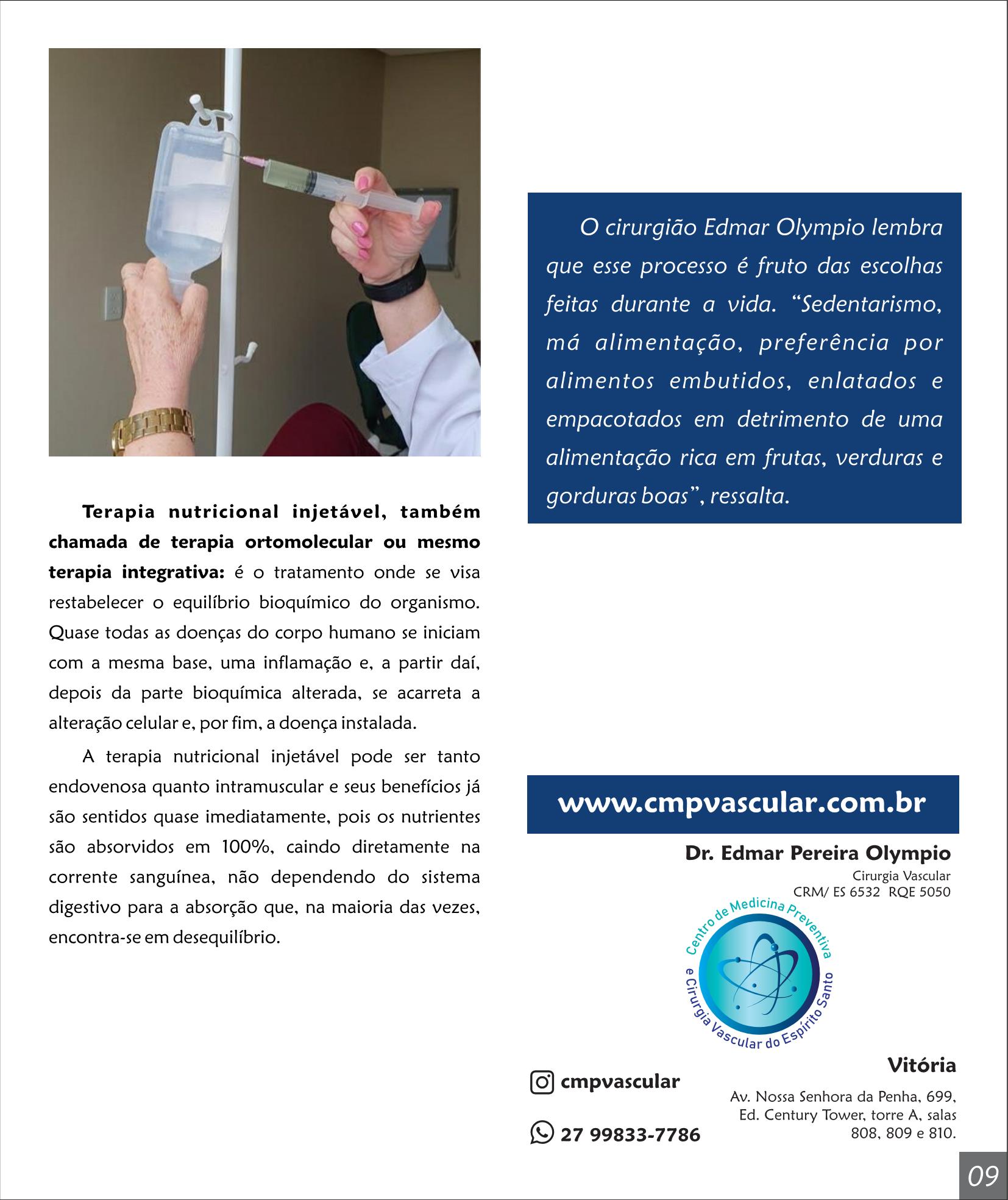 O cirurgião vascular Edmar Olympio, formado pela Emescam, com especialização em Cirurgia Geral no Hospital Santa Rita de Cássia, em Vitória, e em Cirurgia Vascular pelo Instituto de Previdência dos Servidores do Estado de Minas Gerias, já atua na área há 22 anos e explica um pouco sobre o que a área atende e quais os procedimentos ele realiza no Centro de Medicina Preventiva e Cirurgia Vascular do ES.