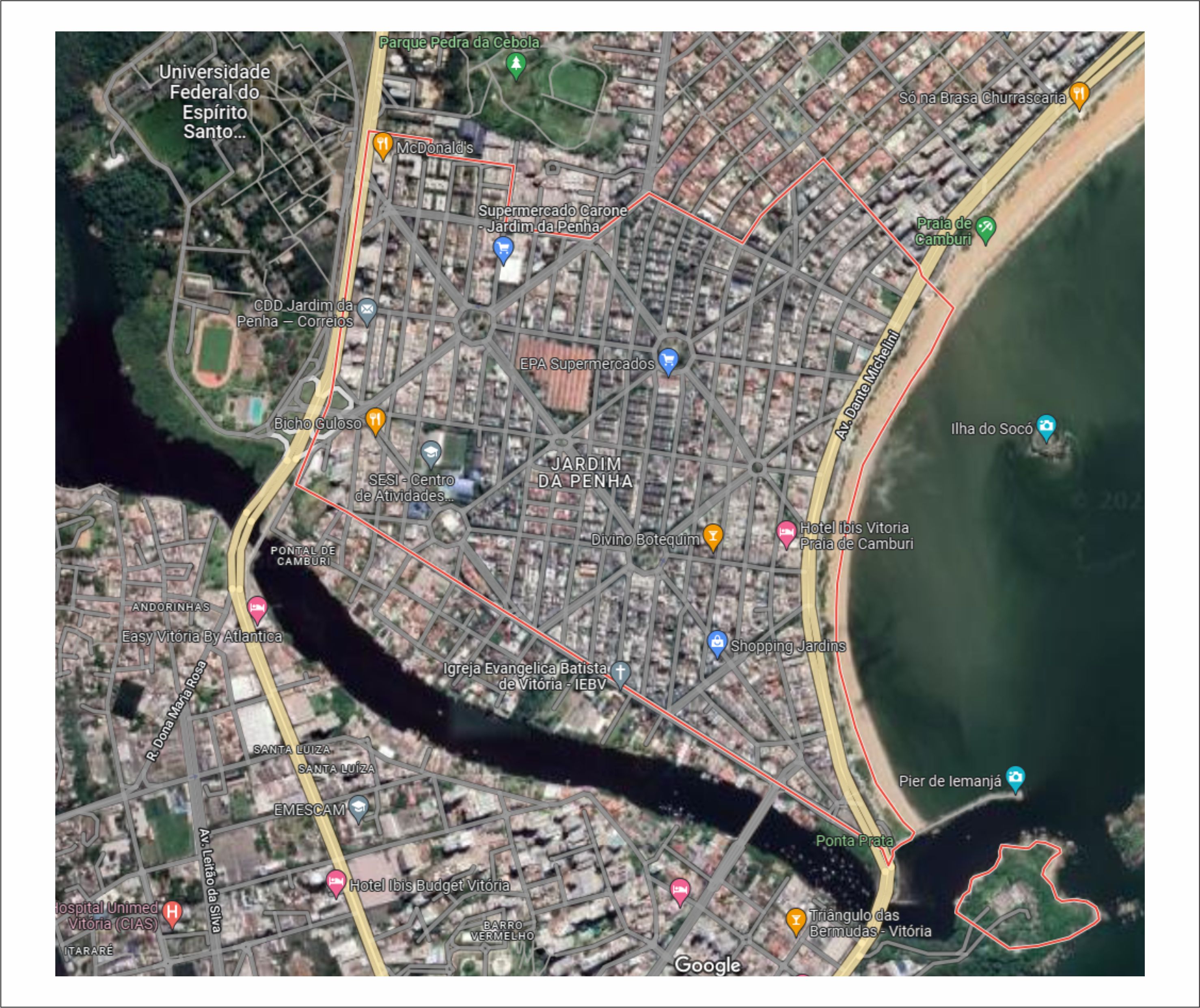 A ideia do loteamento e urbanização da área ressurgiu na década de 1950. A Empresa Capixaba de Engenharia e Comércio idealizou a área inspirada no traçado da cidade de Belo Horizonte, considerada, até então, modelo de modernidade. O projeto foi aprovado pela prefeitura dois anos depois. A região da Adalberto Simão Nader até o Canal de Camburi foi desenhada em largas avenidas diagonais, formando 13 quadras. Cada quadra era dividida em lotes de aproximadamente 400m². Os primeiros lotes vendidos foram os da região que hoje abriga o bairro Jardim da Penha. A alteração do traçado original, em algumas localidades, deu-se por causa das invasões que ocorreram na divisa com o canal e também a uma nova proposta da empresa Sena Engenharia que planejou outro traçado para o projeto Mata da Praia.